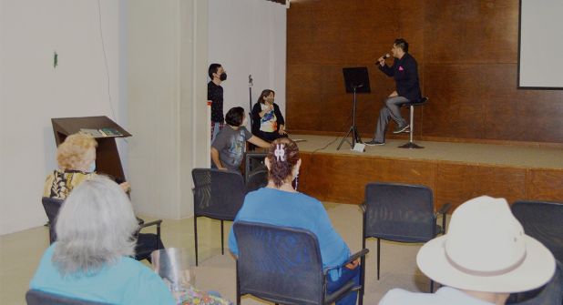 Posteriormente tocó el turno a Alejandro Castañeda, integrante de la Red de Agentes Culturales Comunitarios de Nuevo Laredo. El cantante en la parte musical del evento, rindió un homenaje en conmemoración de los aniversarios luctuosos de Mercedes Sosa y José José; así como del natalicio de Violeta Parra.