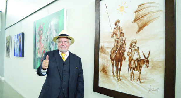 La sala de exhibiciones temporales del centro regional de promoción literaria, se llenó de color y magistrales trazos, con las obras del reconocido pintor fronterizo, quien en esta ocasión presentó una colección inspirada en el “caballero de triste figura”.