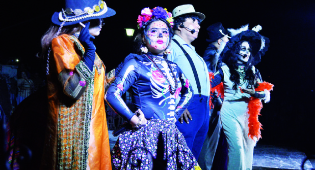 Esta pieza teatral deleitó al público con momentos de risas y música, en donde las voces juveniles de la compañía hicieron gala de su talento. El elenco de “La Catrina...” al final de su participación se llevó un gran aplauso. Otros de los números artísticos fueron las estampas dancísticas, como “Hoy danzo para mis muertos”, que fueron muy bien recibidas por los asistentes.