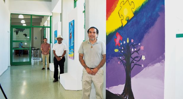 La primera muestra está integrada por cuatro piezas dedicas al autismo, las cuales fueron desarrolladas por los artistas fronterizos Héctor Rodríguez, Chacho Díaz y Tomás Sanmiguel, quienes estuvieron presentes para hablar sobre sus piezas.