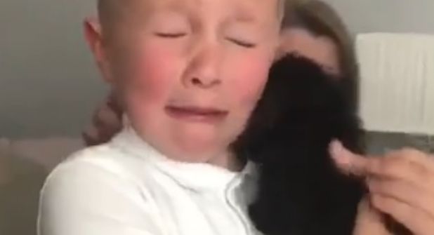 Jensen, el ahora poseedor de este pequeño cachorrito negro, llora al cargar por primera vez a su nueva mascota y le transfiere unas palabras poderosas: "Desde ahora seré tu mejor amigo".