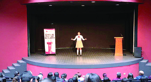 El concurso de oratoria, iniciativa del Gobierno del Estado fue llevado a cabo por las Preparatorias Municipales en el Teatro Lucio Blanco.