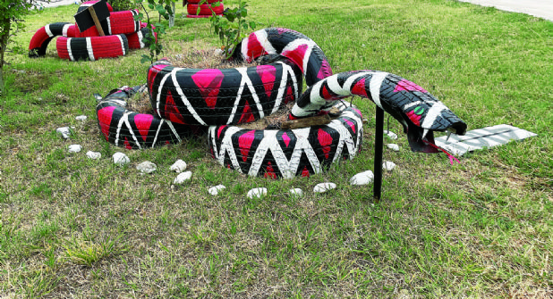 Serpientes, tazas de té, relojes, ranas, fuentes, minions y norias, son algunas de las formas que dieron a los maceteros que decoran las áreas verdes, además que sirvió para sembrar plantas y flores que le dan un mayor realce, todo como parte de un proyecto de reciclaje, informó Verónica Ramos, titular de la asignatura.