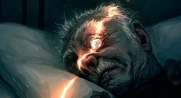 El asesino se sintió poseído por una fuerza demoniaca y planeó el asesinato del admirable anciano que ni insultaba siquiera, pero su ojo de color azul más pálido le ponía en un modo listo para cometer el crimen.
