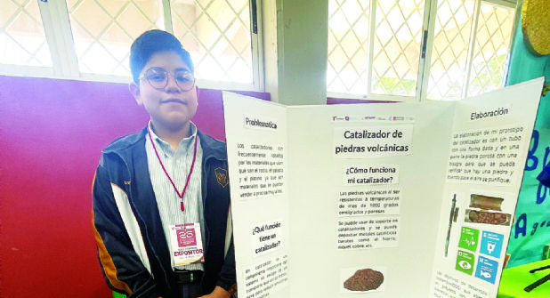 Se trata de Ángel Cifuentes Pineda, destacado alumno que gracias a su proyecto de catalizador de piedras volcánicas logró ir avanzando en distintas etapas del certamen de ciencia y tecnología regional, estatal y nacional, así como internacional, tentativamente en el mes de marzo del próximo año.