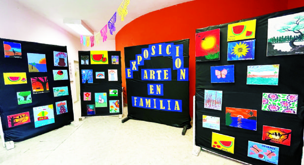 En la recepción de la institución se montaron cerca de 60 cuadros que pintaron los alumnos, desde paisajes, naturaleza, así como alusivos a la Pascua y la primavera, como parte del proyecto denominado “Arte en Familia”.