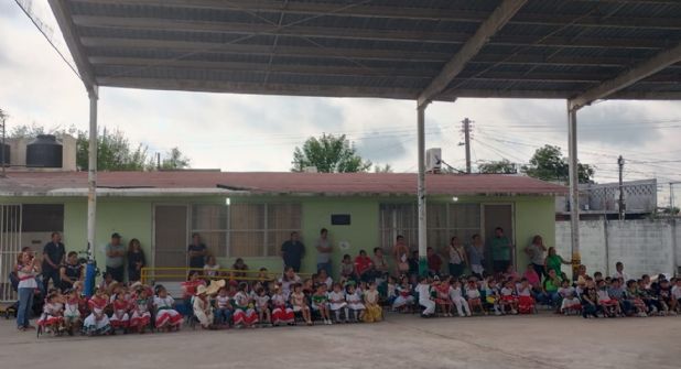 La directora del jardín de niños Guadalupe Gómez Márquez dedicó unas palabras a los niños para reforzar los valores patrios a esta edad temprana.