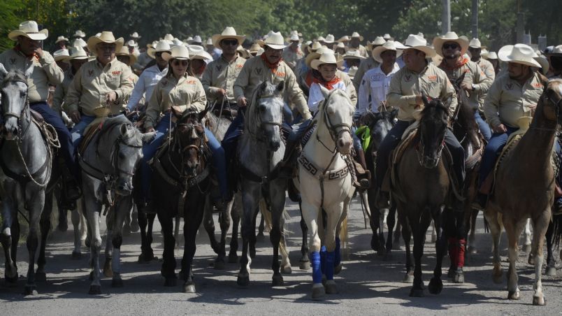 El rector Dámaso Anaya, acompañado del director interino de la FMVZ, José Octavio Merino Charrez, encabezó la tradicional Cabalgata 2025