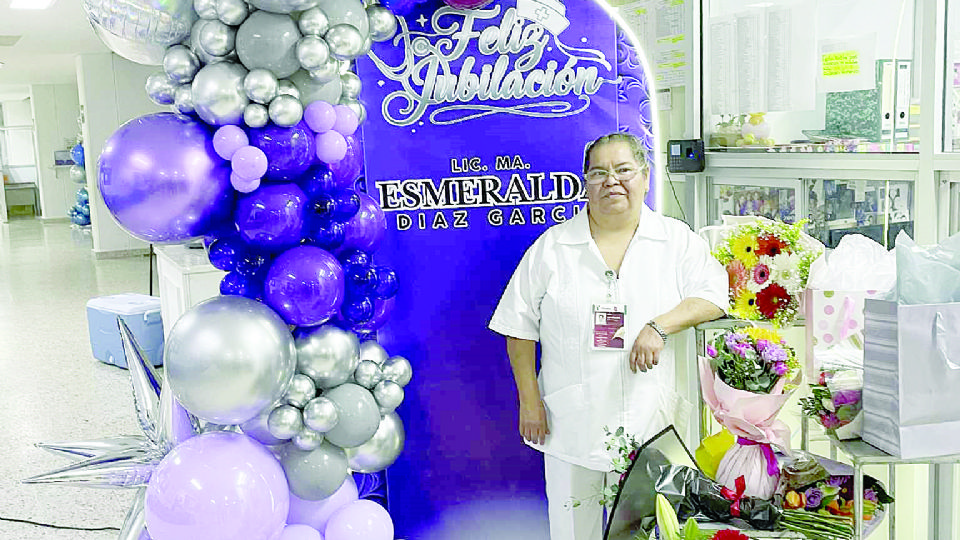 Cada jubilación de un trabajador de la salud es un logro y una satisfacción, luego de años de entregar su existencia a servir, luchar por la salud y la vida de sus semejantes. Tras una destacada trayectoria de más de tres décadas al servicio de la salud, la licenciada María Esmeralda Díaz García, de 56 años, culmina su carrera profesional en el Hospital General de Nuevo Laredo.