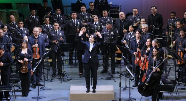 Bajo la dirección del maestro Remigio Reyes González, la Orquesta Sinfónica de Alientos brindó un programa lleno de energía e identidad nacional, que incluyó arreglos sinfónicos de música mexicana. Posteriormente, la Banda de Guerra de la Coordinación Territorial Región Golfo de la Guardia Nacional se presentó con un despliegue de fuerza y precisión.
