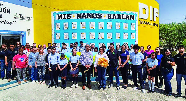 La comunidad escolar del Centro de Atención Múltiple No. 46 Tzehuali inauguró el mural “Mis Manos Hablan”, en el que plasmaron el alfabeto en lengua de señas mexicana, con el objetivo de fomentar el uso de este método de comunicación con las personas con discapacidad auditiva y del habla.