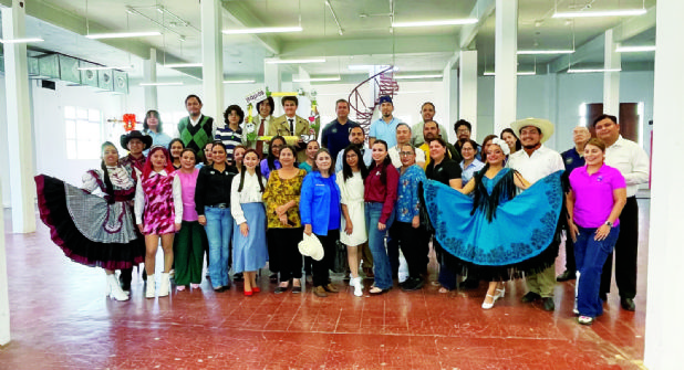 El Edificio Rojo de la casa de estudios fue el escenario para la presentación de los alumnos integrantes del grupo de teatro y danza folklórica, como parte de la estrategia implementada por la Secretaría de Educación Pública (SEP) a nivel nacional.