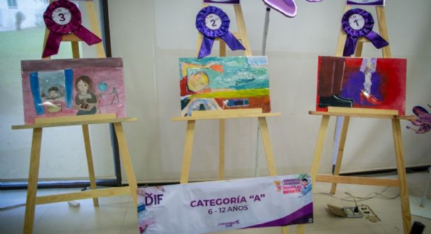 En la categoría “A” del concurso de dibujo, Ana Esmeralda Galicia Chapa, de 11 años, obtuvo el primer lugar, mientras que Karla Samira Compeán Mendoza, de 8 años, logró el segundo lugar con una obra que reflejó su visión sobre la erradicación del trabajo infantil.