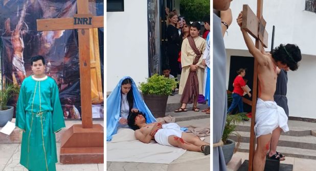 En la parroquia Antonio María Claret, 38 niños y adolescentes escenificaron un Viacrucis viviente, el cual se desarrolló por tercer año consecutivo.