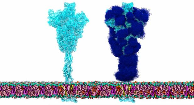Las simulaciones por ordenador también revelan que este “glaseado” es menos eficaz resguardando a la proteína de moléculas pequeñas, que podrían acceder sin problemas a en torno al 80% de la superficie. Descubrir las partes más vulnerables de la espícula puede ayudar a los investigadores a encontrar fármacos más eficaces contra la covid.