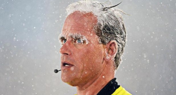 Una de las imágenes más peculiares, que le ha dado la vuelta al mundo, es la de un árbitro al que literalmente se le congelaron las pestañas debido al intenso clima que se vivió en Colorado.