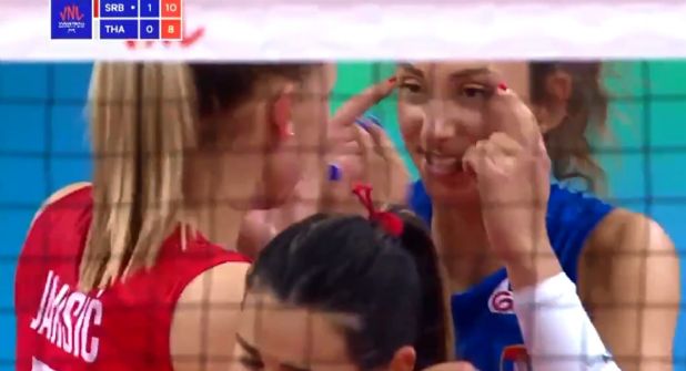 La rival que fue víctima del gesto racista es Pleumjit Thinkaow, tras haber anotado un punto para su equipo, la serbia con sus dedos hizo la seña de rasgarse los ojos hacia atrás para simular ser “asiática” mientras carcajeaba con una de sus compañeras.