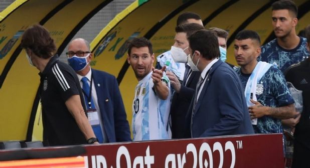 Ayer durante el encuentro entre Brasil-Argentina, al minuto 6 funcionarios de las autoridades sanitarias de Brasil ingresaron al campo de juego, por una presunta infracción en el protocolo sanitario.