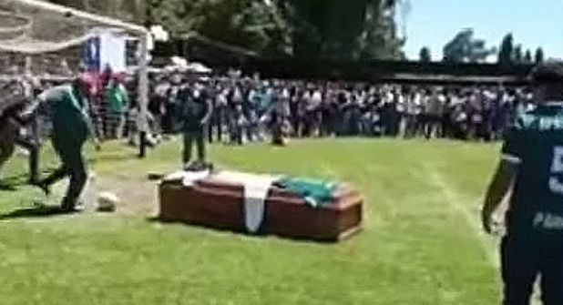 Un goleador fallecido anota su último gol desde el ataúd. Su último gol, hace delirar a sus compañeros de equipo y a sus fans que desde las tribunas gritaron con entusiasmo la anotación.