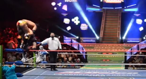 Un luchador mexicano ha sufrido convulsiones en plena pelea, luego de haber recibido un fuerte golpe arriba del ring.