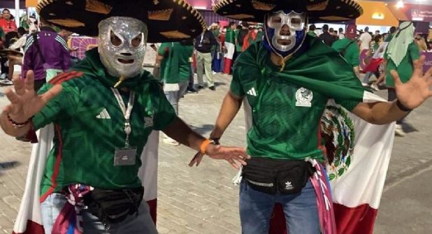 Cientos de aficionados mexicanos que portaban la playera de la selección, sombreros, pancartas, y hasta máscaras de luchadores, se reunieron afuera del Estadio 974 en Doha, capital de Qatar, donde entonaron porras y las clásicas canciones mexicanas en apoyo del Tri.