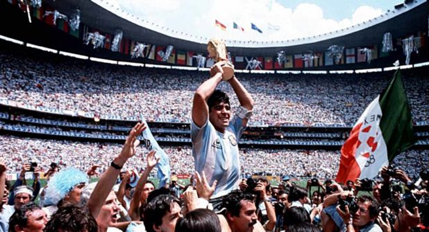 En 1986 México auspició el Mundial por la imposibilidad de realizarse en Colombia, que era la sede oficial original. Este evento se lo llevó de manera total Diego Armando Maradona, que llevó a Argentina de la mano a ganar su segunda copa, humillando de paso a Inglaterra, con quienes anteriormente tuvieron un conflicto bélico por la Guerra de las Malvinas.
