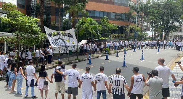 Con carteles y mantas con su rostro, el centenar de simpatizantes del Santos permanecía en silencio en la puerta de la clínica en el barrio paulista Morumbi.