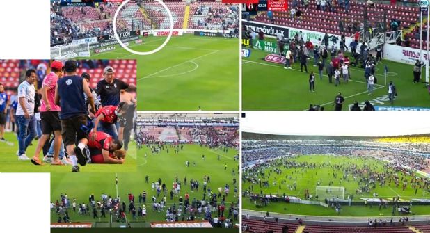 Cientos de aficionados entraron en un estado eufórico y mientras algunos peleaban en las bancas del público, otros escaparon de los golpes corriendo hasta la cancha, donde minutos después fueron alcanzados por las personas agresoras que golpeaban a todas las personas a su paso.