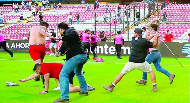 Los aficionados que no tenían intención de pelear bajaron a la desesperada al campo de juego para resguardarse en la peor agresión de la que se tiene registro entre aficionados en México. Los futbolistas de ambos clubes pegaron la carrera directo a los vestidores. Se habían jugado 62 minutos. Pasadas las 9:00 de la noche, las autoridades aún no informaban del saldo exacto de heridos, pero se habla que son al menos 22, algunos graves.