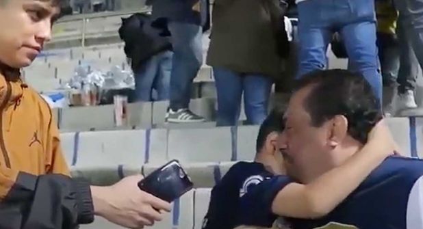 Ante la situación, el reportero los dejó desahogarse durante varios segundos. Unos instantes después, otro aficionado se acercó para levantar la mano del señor y darle ánimo a ambos.