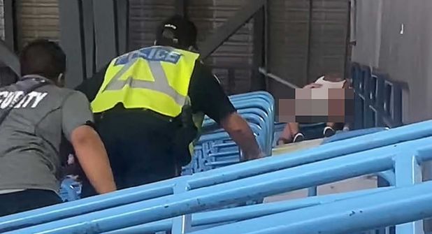 Sin embargo, parece que la pareja no pudo completar su propósito, ya que se vio a un grupo de personal de seguridad del estadio marchando en su dirección rápidamente después de ser exhibidos ante todos los espectadores.
