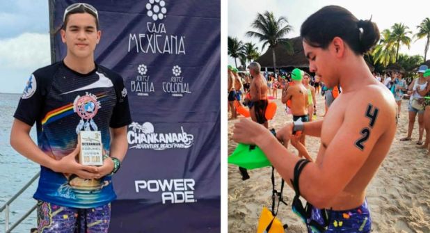 El nadador tamaulipeco del equipo Zazil atravesó 10 kilómetros nadando el las aguas del caribe para lograr su hazaña.