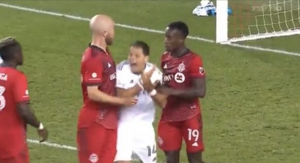 En un partido de la Mayor League Soccer (MLS), Chicharito Hernández provocó el enojo de Michael Bradley, jugador del Toronto FC, quien lo encaró junto con otros compañeros de su equipo por su actitud.