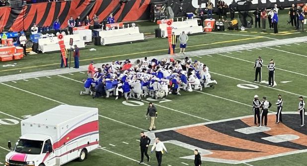"Hamlin recibió atención médica inmediata en el campo por paramédicos y el personal médico del equipo; fue transportado a un hospital local en donde su condición es crítica.