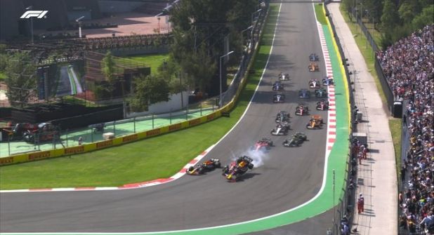El mexicano comenzó con todo desde la la quinta posición con su RB19 en el Autódromo Hermanos Rodríguez de la Ciudad de México, sin embargo una mala estrategia causó su apresurada salida.