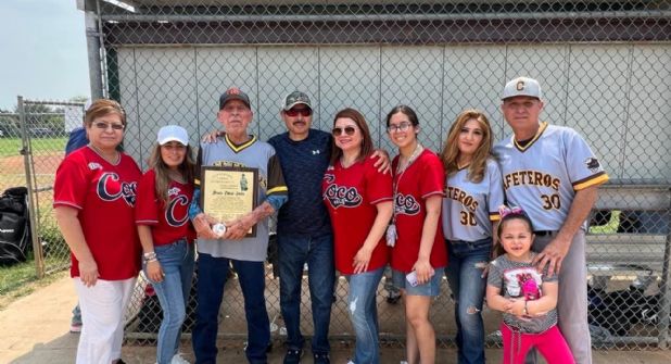 Los promotores e impulsores del rey de los deportes Julián Ramírez, Alejandro Ortiz y la emblemática novena de los Cafeteros se unieron para hacerle entregan una placa a un grande del guante, el bate y la pelota esto en la Liga Máster de beisbol dentro de la jornada 3 en la vecina ciudad de Laredo, Texas.