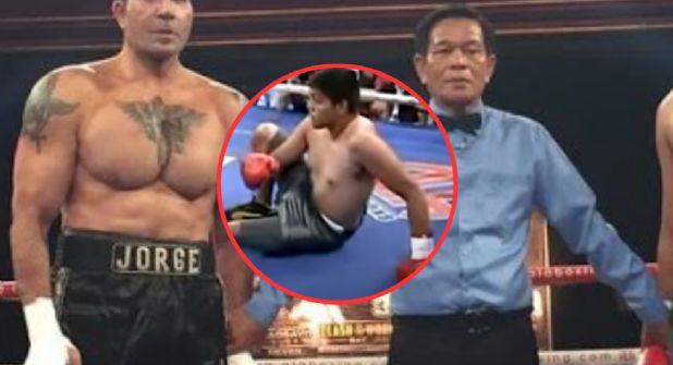 Aprovechando que Olivas dejó descuidada su guardia, Jorge aprovechó para soltarle un zurdazo que lo mandó a la lona. Tras ocho segundos contados por el réferi Samson Libres, la pelea continuó.