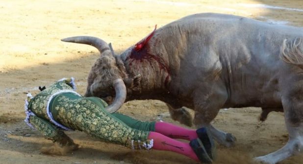 La cornada fue espeluznante y la corrida se paró momentáneamente mientras que el torero estaba siendo atendido en la enfermería y de urgencia un helicóptero se lo llevó a Madrid.