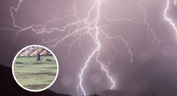 Un vídeo muestra el momento preciso de la caída del rayo sobre varios futbolistas que se desvanecen al mismo tiempo sobre el césped.