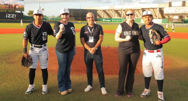 La alcaldesa Carmen Lilia Canturosas Villarreal tuvo el honor de inaugurar el esperado juego de béisbol con el primer lanzamiento, un gesto que fue recibido con vítores y aplausos por la multitud que llenaba el estadio.