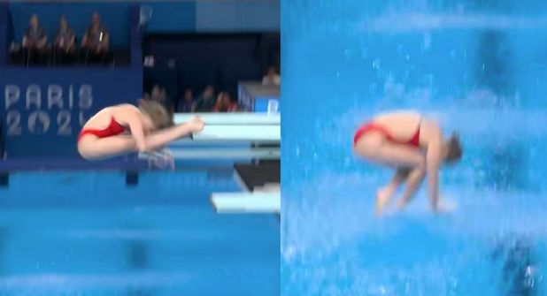 Alison Gibson tuvo una mala ejecución en su primer clavado en los Juegos Olímpicos de París 2024, pues la deportista fue calificada con cero puntos luego de que sus pies golpearan el trampolín de tres metros cayendo de manera erronea al agua.