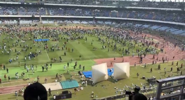 El evento duró tan pocos minutos, que los fanáticos comenzaron a mostrar su inconformidad arrojando objetos a la cancha, muchos de ellos eran butacas del estadio que se usaron para agredir a la policía.