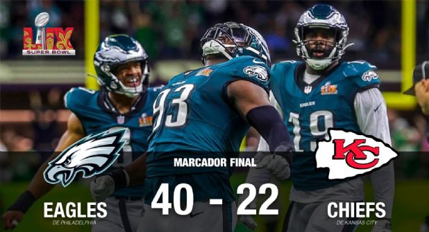 Los Eagles de Philadelphia se coronaron campeones por segunda ocasión en su historia, tras apalear 40-22 a los Chiefs de Kansas City, que cedieron el trono ante un rival que fue infinitamente superior.