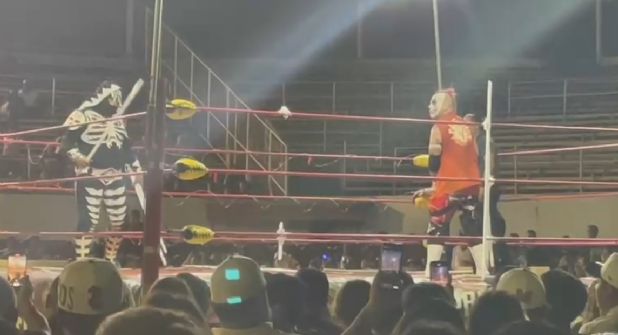 Antes de que arrancara la contienda, "La Huesuda" agradeció a los neolaredenses por el lleno en el mismo recinto en el que desató a Pierroth Jr., y mencionó que en esas condiciones sí le gusta darse hasta con la cubeta con sus rivales.