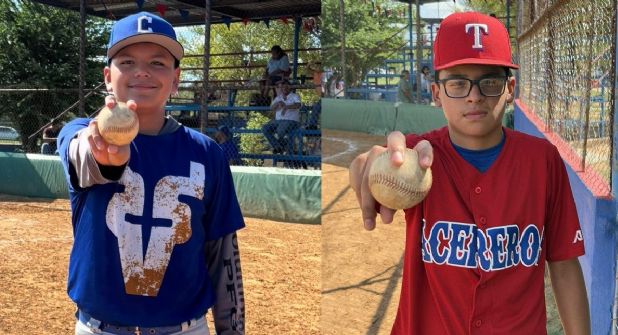 Roberto González e Iker Gatica, dos talentosos jóvenes de la categoría 13-14 años de la Liga Tamaulipeca, destacan con el bate al pegar, cada uno, un grand slam en juegos de pretemporada.