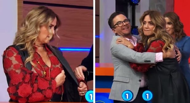 Sin embargo, el entusiasmo de Mauricio Mancera hizo que chocara con Legarreta en pleno festejo, provocando que uno de los pechos de la conductora recibiera un duro impacto.
