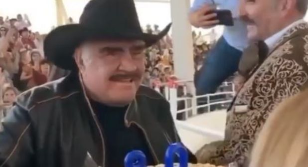 Dentro de las actividades del Campeonato Charro, que se llevó a cabo en el rancho a las afueras de Guadalajara, el público le llevó un pastel a Vicente Fernández.
