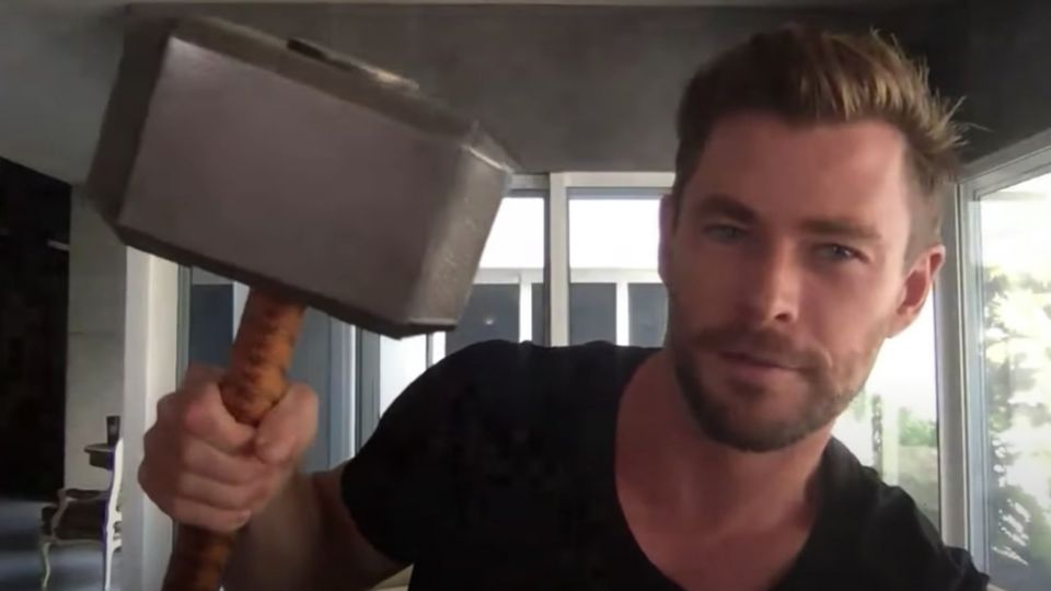 Durante una entrevista con Jimmy Kimmel el actor aprovechó la oportunidad para mostrar sus tesoros, los martillos que ha usado en las películas de ‘Thor’ y el hacha que vimos en ‘Avengers: Endgame’.