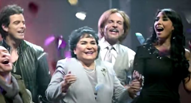 Minutos después, junto a personajes como Adal Ramones y Yuri la cámara hace un movimiento de izquierda a derecha y Carmen Salinas aparece interpretando el tema.
