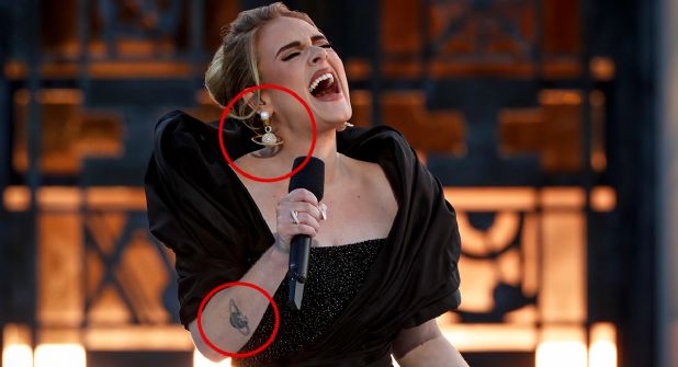 Pero además de haber lanzado el primer coste del esperado disco, hace unos días la intérprete de 'Rolling in the deep' consintió a sus fans con un concierto especial para la televisión llamado 'One Night Only', filmado en el Observatorio Griffith de Los Ángeles, donde deslumbró con un vestido negro entallado, pero lo que realmente llamó la atención el nuevo tatuaje de Saturno de Adele, así como los aretes del mismo planeta que lució durante el especial.